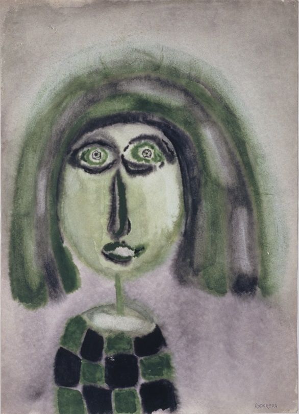 Femme souriante à la robe en damiers noirs et verts (s. d.), aquarel·la sobre paper (Fundació Mercè Rodoreda); Sense títol [rostre emmarcat i ratllat] (1955), aquarel·la sobre paper (família Borràs-Gras); Femme souriante (s. d.), aquarel·la sobre paper (Fundació Mercè Rodoreda); General en état de décomposition (1955), aquarel·la sobre paper (família Borràs-Gras); Sense títol [figura disfressada d’egípcia en blanc i negre] (s. d.), aquarel·la sobre paper (Fundació Mercè Rodoreda); Jeune homme deguisé en égyptien (s. d.), aquarel·la sobre paper (col·lecció particular); Dame charive assise avec clé sur la Tête (s. d.), aquarel·la sobre paper (família Borràs-Gras); Sense títol [figura amb cinc claus al cap] (s. d.), aquarel·la sobre paper (col·lecció particular); Femme bleue à la bouche triste (s. d.), aquarel·la sobre paper (col·lecció particular).