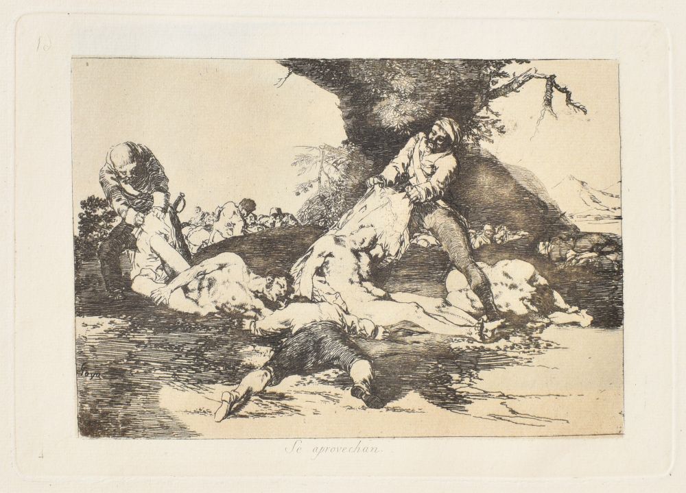 A més, va donar al monestir un valuós fons de gravats, estampes i litografies originals —de qualitat desigual— que supera els cinc mil exemplars. La donació està formada per una col·lecció de 42 estampes de Francisco de Goya, procedents de les conegudes sèries La Tauromaquia, Los Desastres de la Guerra (figura 3) i Los Caprichos, corresponents a diverses edicions; sèries de gravats de Francesco Piranesi i Giovanni Battista Piranesi; quatre gravats de Rembrandt; una vintena d’aiguaforts acolorits a mà, dibuixats pel flamenc Georgius Hoefnagel i gravats per Frans Hogenberg, extrets de l’obra Civitates Orbis Terrarum (1572-1618), editada pel geògraf i cartògraf alemany Georg Braun (figura 4), i litografies d’indrets de l’Espanya del segle xix de Genaro Pérez de Villaamil y Duguet, impreses per Lemercier.