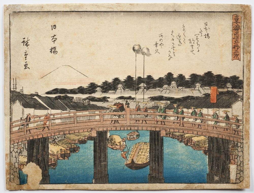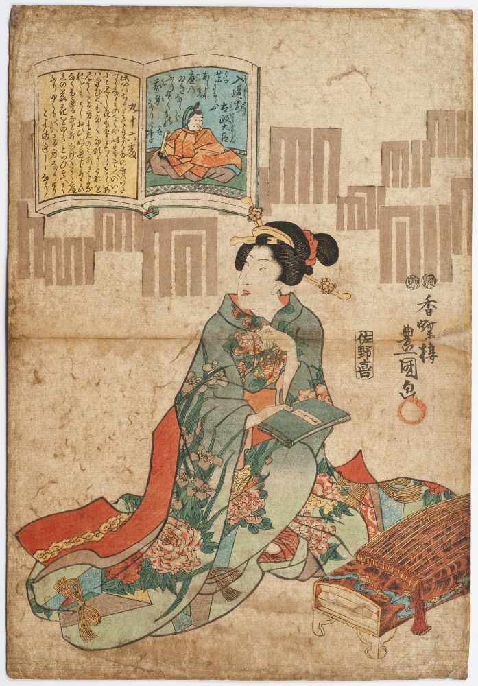 Per la seva banda, al Museu de Montserrat es conserva una col·lecció de disset gravats japonesos representatius de l’escola Ukiyo-e, corresponents a edicions del segle xix, procedents de la donació de Just Cabot. Aquesta col·lecció inclou vuit estampes d’enorme interès de l’artista Andō Hiroshige (1797-1858), entre les quals destaca la titulada Nihonbashi (figura 5), així com obres d’altres artistes de menor renom, com Kokuba, Shigenobu Yanagawa, Katsukawa Shunshō, Tsukioka Yoshitoshi, Utagawa Sadahiro, Utagawa Yoshitora i Utagawa Toshidama, autor de Dona llegint en un interior (figura 6).